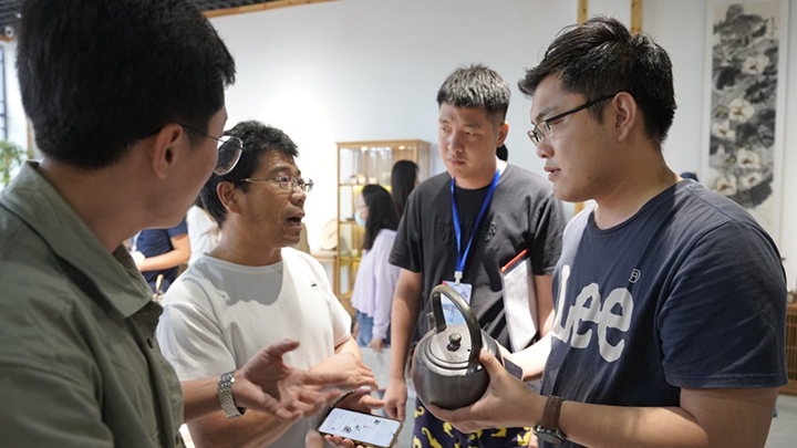 據了解,晉明堂與省內外高校聯合,與國內外知名專家和工藝師聯合,在傳承傳統技藝和創新之間尋求平衡,蹚出了一條發展新路。晉明堂注重器物裝飾,植入平定傳統的雕刻、書法、繪畫等藝術種類,融合進山西特有工藝琺華、大漆、刻花等技藝,巧妙地將紫砂與貴金屬結合,實現了傳統紫砂器制作和審美趣味突破。