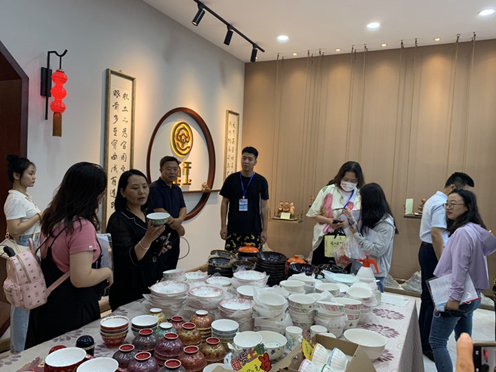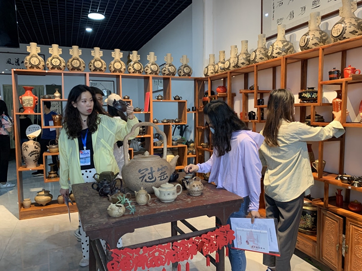 第十七屆全國網絡媒體山西行記者團來到參觀平定縣砂器(紫砂)文化示范區。記者楊惠生攝