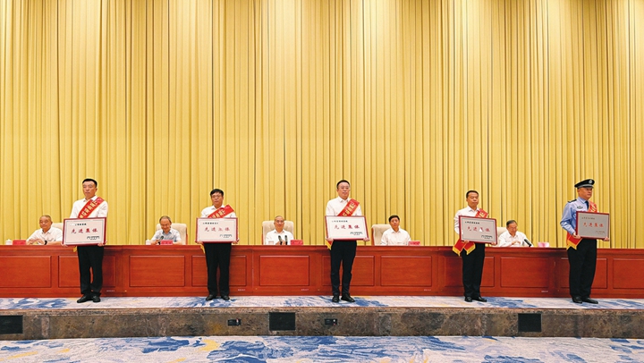 9月6日,在全省信訪工作會議上,省委書記林武向全省信訪系統(tǒng)先進集體和先進工作者頒獎。記者史曉波攝