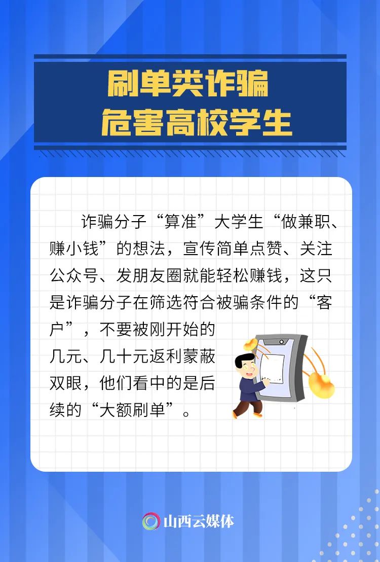 近年來(lái),電信網(wǎng)絡(luò)詐騙犯罪形勢(shì)嚴(yán)峻,針對(duì)“師生群體”的陷阱也愈加突出。開學(xué)季來(lái)臨,詐騙分子也不會(huì)錯(cuò)過(guò)這個(gè)“節(jié)點(diǎn)”。9月8日,山西省反詐中心向廣大師生及家長(zhǎng)發(fā)布了一封反詐提醒信,針對(duì)不同的群體,騙子們有哪些伎倆你知道嗎?跟著這組海報(bào)一起來(lái)上這堂反詐“必修課”!