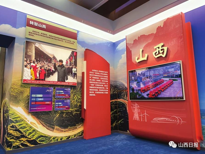 其中,山西單元位于地方展區,總面積約160平方米,展線約60延米,分轉型山西、能源山西、文化山西、幸福山西、清廉山西五個部分,通過圖片、實物、視頻、多媒體展項等展現了我省全方位推動高質量發展的生動實踐和豐碩成果。