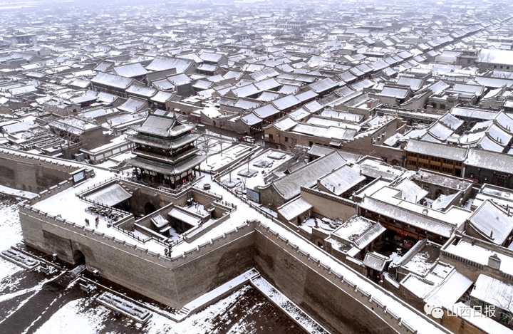 統籌推進古城保護傳承工作。圖為2021年1月世界文化遺產山西省平遙古城雪景。