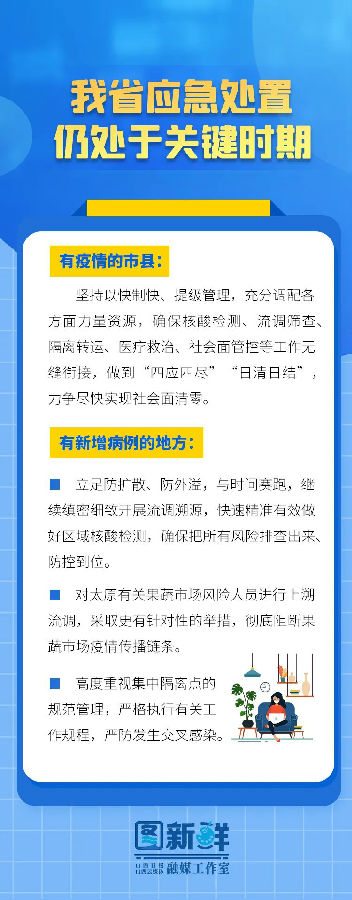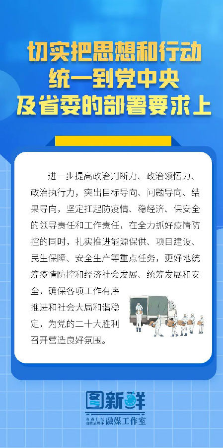 他強調,要提高政治站位,扛牢政治責任,毫不動搖堅持疫情防控總策略總方針,認真落實省委“早、快、準”要求,加快推動疫情見底清零,抓實抓細常態化防控工作,堅決打贏這場疫情遭遇戰阻擊戰殲滅戰,堅決守牢疫情防控山西陣地,以實際行動和優異成績迎接黨的二十大勝利召開。