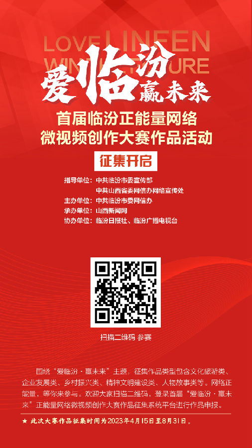 為進一步鼓勵網絡視聽行業創作生產高質量的視聽內容,豐富網絡正能量供給,講好臨汾故事,傳播臨汾聲音。目前,向廣大網民特別是臨汾本地藝術人才和專業視頻創作者、網絡工作者、草根原創作者發出邀約,廣泛征集以臨汾人、臨汾事、臨汾景和臨汾取得的新成就、新變化等為拍攝主體,集中反映臨汾產業轉型、城市更新、文旅融合、營商環境、鄉村振興、文明創建、美麗生態、民生福祉、廉政建設等方面取得的顯著成績,全方位展現臨汾近年來翻天覆地的喜人變化,鼓勵創作更多唱響主旋律、弘揚正能量的優秀作品,不斷滿足人民群眾日益增長的網上精神文化需求。