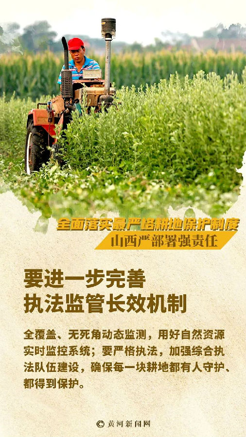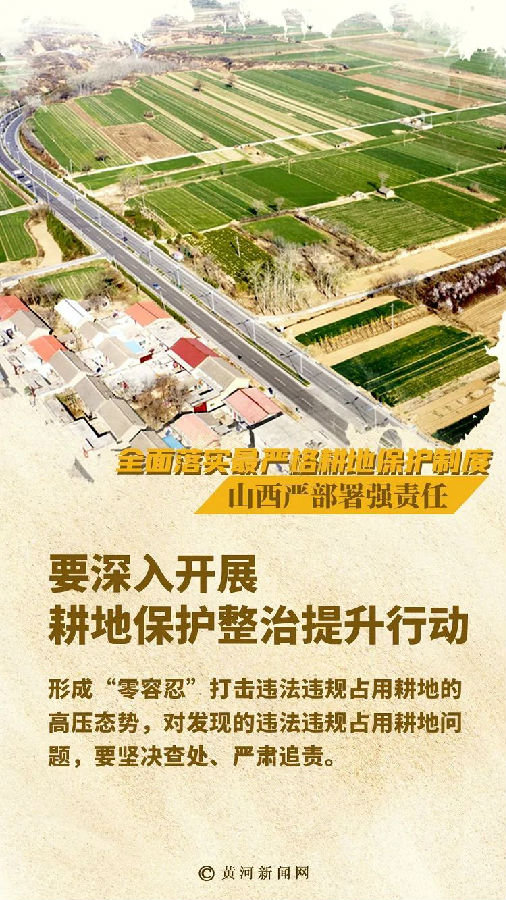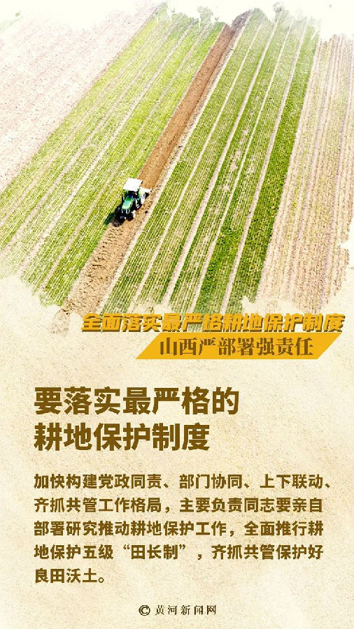 今年是全面落實耕地保護黨政同責的第一年。近日,山西對耕地保護工作提出要求,強調要深入學習貫徹習近平總書記關于耕地保護的重要論述和考察調研山西重要講話重要指示精神,全面落實最嚴格的耕地保護制度,以對黨和人民高度負責的態(tài)度,守牢耕地保護紅線,夯實糧食安全“壓艙石”,為全省加快推動高質量發(fā)展和現代化建設提供有力保障。