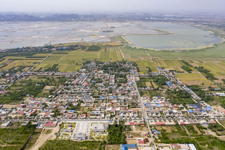 這是5月17日拍攝的運城市鹽湖區東郭鎮蚩尤村(無人機照片)。新華社記者 楊晨光 攝