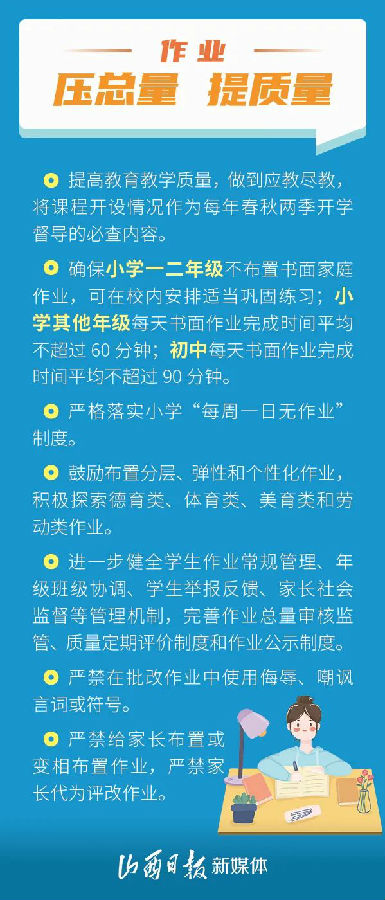 “雙減”改革實施以來,太原市各縣(市、區)教育局和中小學校的校內減負提質取得一定成效。為深入推進“雙減”政策落實落地,堅決杜絕“應減未減”,太原市教育局印發《關于進一步做好“雙減”工作的通知》,多措并舉推動落實校內減負提質。