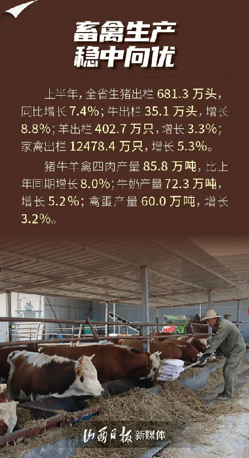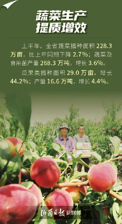 7月24日,山西省統計局發布數據,上半年,全省夏糧生產形勢良好,蔬菜生產提質增效,畜禽生產穩中向優,漁業生產健康發展,全省農業生產成效顯著。