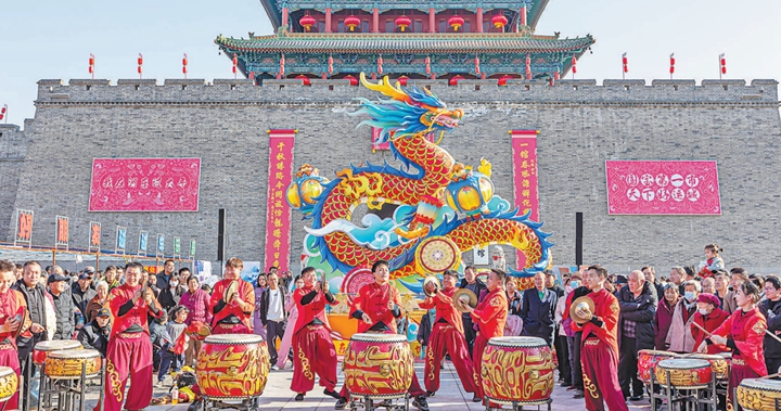 春節(jié)期間,山西省運城市舉辦“我在河?xùn)|過大年——非遺讓旅游更美好”非遺進(jìn)景區(qū)活動,表演絳州鼓樂、稷山高臺花鼓、河?xùn)|說唱道情、絳州皮影戲等多個非遺項目,推進(jìn)文化與旅游融合發(fā)展。圖為日前,絳州鼓樂傳承人在進(jìn)行表演。