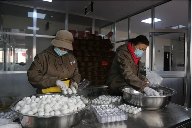▲晉祠桂花元宵工坊內(nèi),趕制元宵“應(yīng)接不暇”