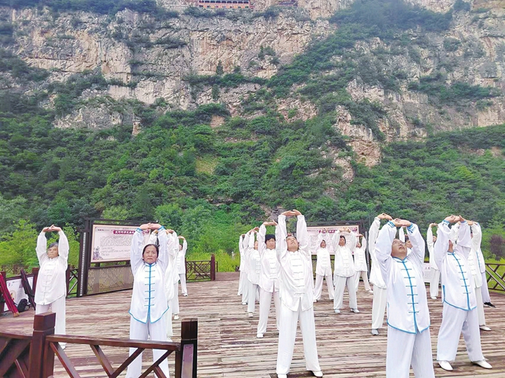 省內的太極拳愛好者在丈河村祖師頂練拳養生。