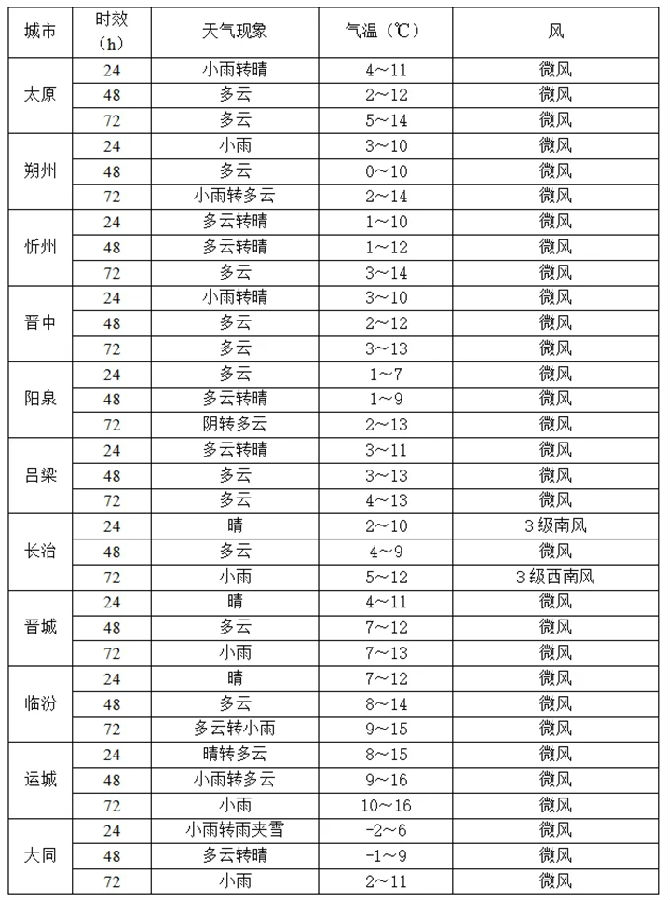 受天氣系統影響,未來三天山西部分地區有雨雪,不過氣溫會慢慢上升。