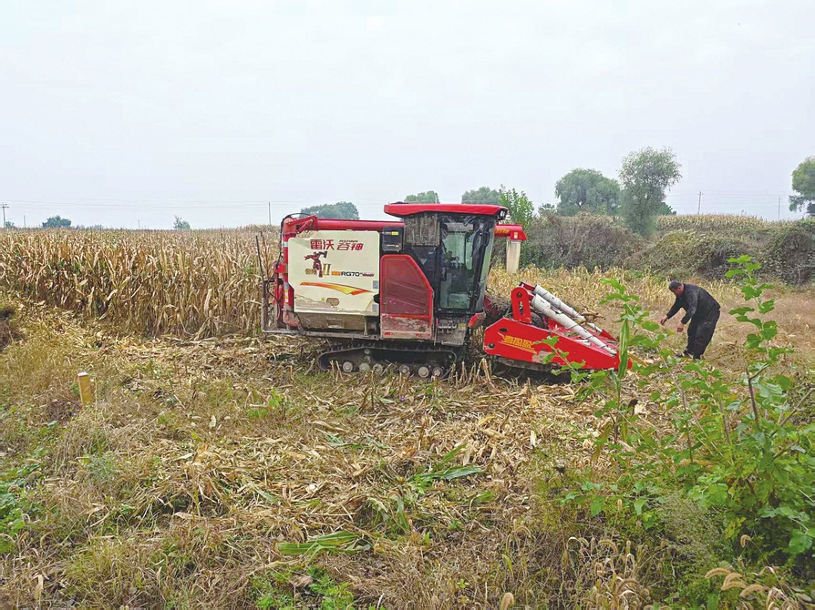 馬路旁邊,收購商的卡車早已等候在側,剛剛收獲的玉米實現了從田間到收購的“無縫對接”。收割機的儲糧倉緩緩伸出傳送管,嘩啦啦的傾瀉聲成了這個秋天最動聽的豐收曲。