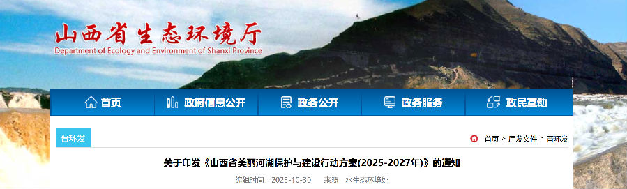 近日,山西省生態環境廳、省發展改革委等七部門日前聯合印發《山西省美麗河湖保護與建設行動方案(2025-2027年)》。其中提出,到2027年,美麗河湖建成率達到40%左右;到2030年,美麗河湖建設取得明顯成效;到2035年,美麗河湖基本建成。