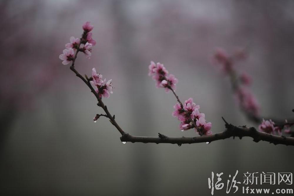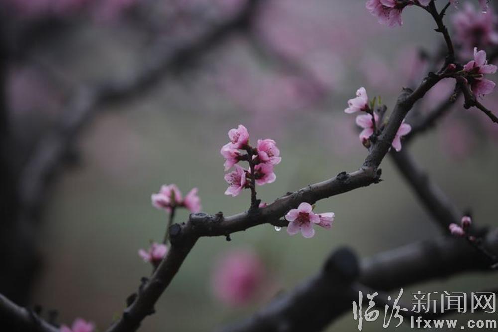 伴隨著蒙蒙細雨和鑼鼓聲,演員們歡歌笑語,四面八方的游客,雨中欣賞著桃花。(宋德勝 攝)