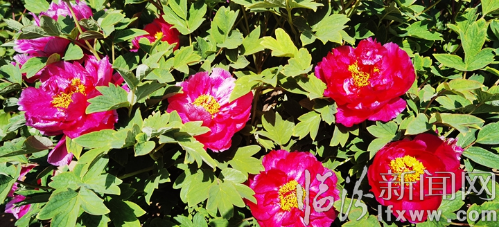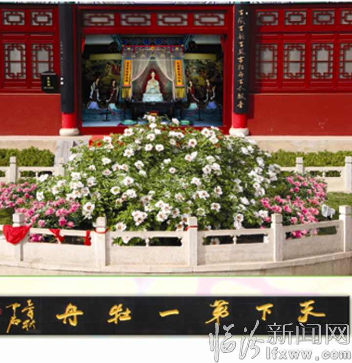 牡丹景區被環抱在群峰秀嶺中。古意盎然的建筑與青山綠水交相輝映,建筑布局嚴謹而有特色。尤其是坐落在牡丹廣場南側山腰的牡丹仙子漢白玉雕像,彰顯著歷史傳說。她亭亭玉立,身材婀娜,薄紗輕掛,云髻高盤,見證著這片土地的變化和發展。牡丹仙子的傳說引來了許多目光和腳步。石壁河銀光粼粼,從景區中央靜靜穿越而過。聚仙橋把牡丹景區南北兩區串連起來。從“天下第一牡丹”壁兩側拾級32臺階而上,便到達牡丹園。好壯觀呀!一眼望去千萬朵,春日暖陽中滿園的牡丹都開了。一片片花海,淡淡的幽香,吸引游客駐足觀賞。我先來到古風古韻的仙子閣前,觀賞牡丹花池里的三合牡丹,淡雅的白花在綠葉襯托下一朵挨著一朵,彼此簇擁著。中間的單株最大,最多時花開621朵,被尊稱“牡丹仙子”。據了解,今年三株共結1311朵花。我沉浸在這繁密花朵的光輝中,那淡淡的香氣似乎也是白色的,這花團錦簇帶給我生命的感動。“唯有牡丹真國色,花開時節動京城。”唐詩里綻放的牡丹花,正沿著眼前的牡丹園還鄉。