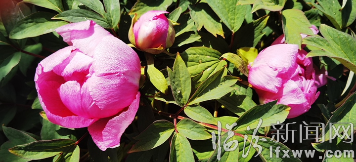 進入古縣縣城,一尊色彩鮮艷的碩大牡丹雕塑會讓你眼前一亮。向右拐沿著長臨高速引線驅車行駛五分鐘就遠遠看到了三合鎮紫砂村旁的“天下第一牡丹”牌樓,進入景區主干道我好像已經聞到了花的馨香,路兩邊挺拔茂密的柏松在春風拂動下蜿蜒伸展著,滿眼的翠綠像不朽的旋律撫慰著你。