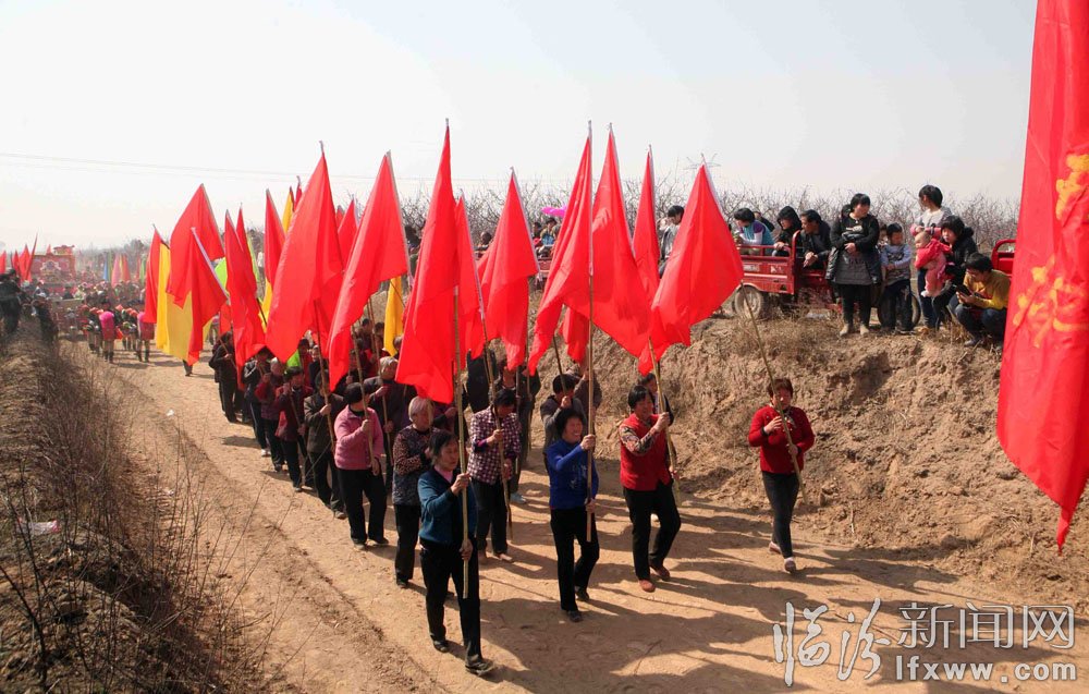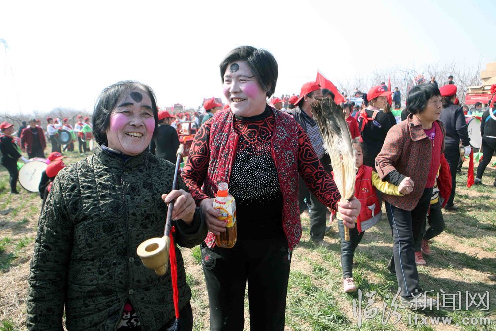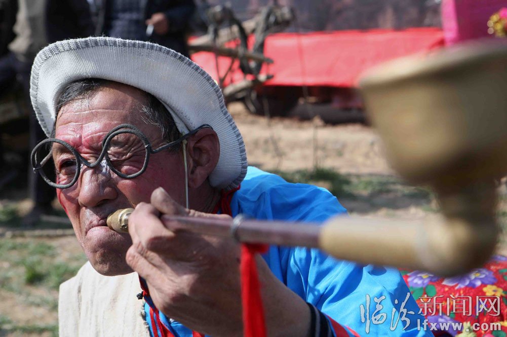 3月15日,在新絳縣萬安鎮趙村廟會上,村民們在田間地頭表演傳統的民間藝術拉鼓車和秧歌,原汁原味的民俗表演吸引了許多人。