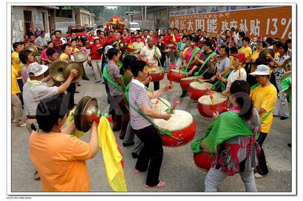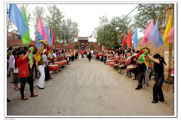 每年的三月初二,羊獬村民便自發地涌入羊獬村“唐堯故園”內,一起歡送前往歷山的走親隊伍。時辰一到,現場鑼鼓齊鳴,村民全部跪下,朝姑姑廟虔誠叩首。隨后,羊獬各社首領在姑姑廟和北側的堯王寢殿前焚香辭行。祭拜完畢,迎親隊伍便浩浩蕩蕩地開拔了。