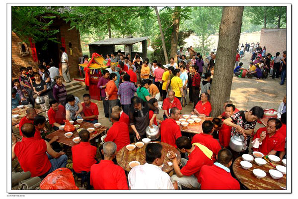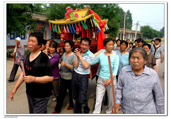 堯舜時代作為一個象征符號,代表了傳統中國政治制度的黃金時代。然而,在走親活動中,真正處于中心地位的不是堯、舜,而是娥皇、女英兩位娘娘。政治文化被高度懸置,這與歷代典籍的敘述傾向形成了強烈的對比,反映了官方文化與民間文化的鮮明分野。進一步說,走親活動中凸顯的是慈愛、仁德等世俗倫常的在場和政治文化的缺失。( 李典平 文/圖 )
