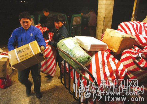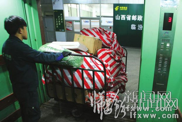 冬季的清晨,臨汾城內(nèi)寒風(fēng)瑟瑟。早晨5時(shí)許,當(dāng)市民們還賴在被窩中時(shí),一輛輛標(biāo)有“EMS”的郵政速遞廂裝車緩緩駛進(jìn)市郵政局,停靠在速遞物流公司的卸貨車間前。箱門一開,幾名師傅迅速卸貨,將一袋袋大小包裹放到小輪車上,準(zhǔn)備分揀。