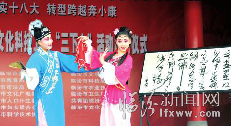 3月7日,臨汾市2013年“貫徹落實十八,轉型跨越奔小康”文化、科技、衛生“三下鄉”活動在襄汾縣丁村文化廣場啟動。我市組織衛生、農業、文化、科技、司法等13個系統的200多人,為農民演出文藝節目,開展義診,宣傳法律知識,傳授科學技術和田間管理,深受廣大基層農民的歡迎。記者 李虎威 攝影報道