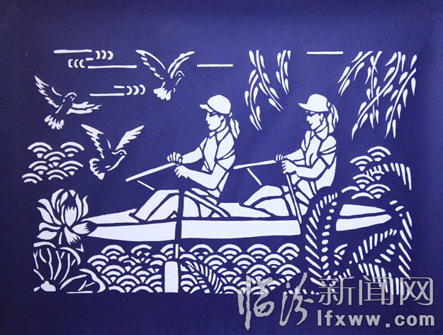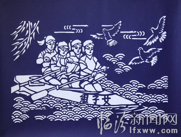 賽后,郭素勤心情久久不能平靜,遂拿起剪刀,用時4天,創(chuàng)作出主題為“臨汾國際名校賽艇挑戰(zhàn)賽”的6幅長50cm、寬30cm剪紙作品。作品將剪紙藝術(shù)與我市悠久深遠的汾河文化結(jié)合起來,別出機抒,用生動剪紙技藝將賽艇賽記錄展現(xiàn)出來。