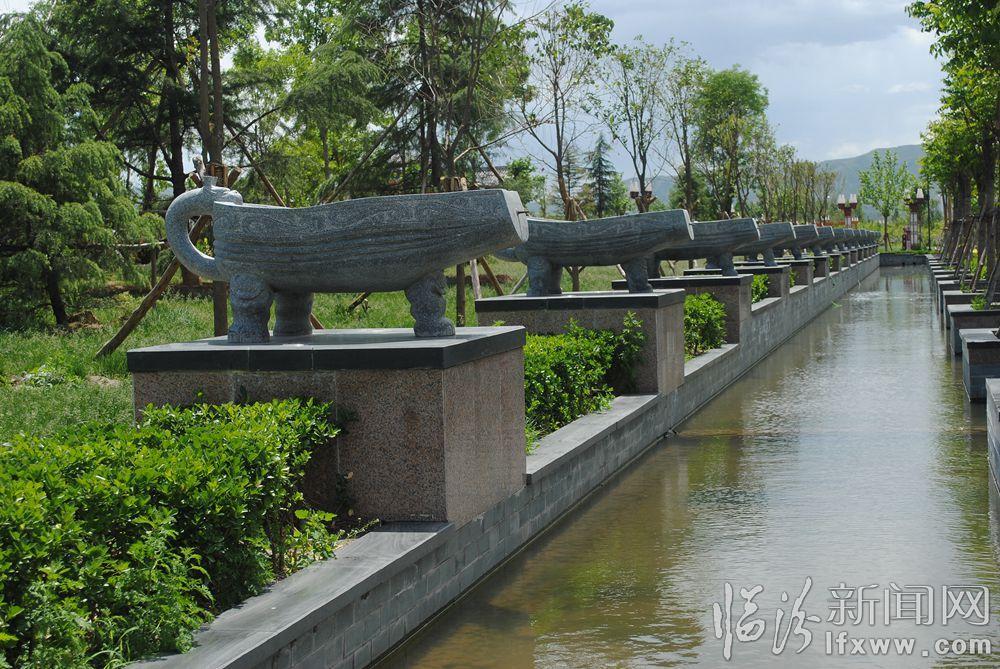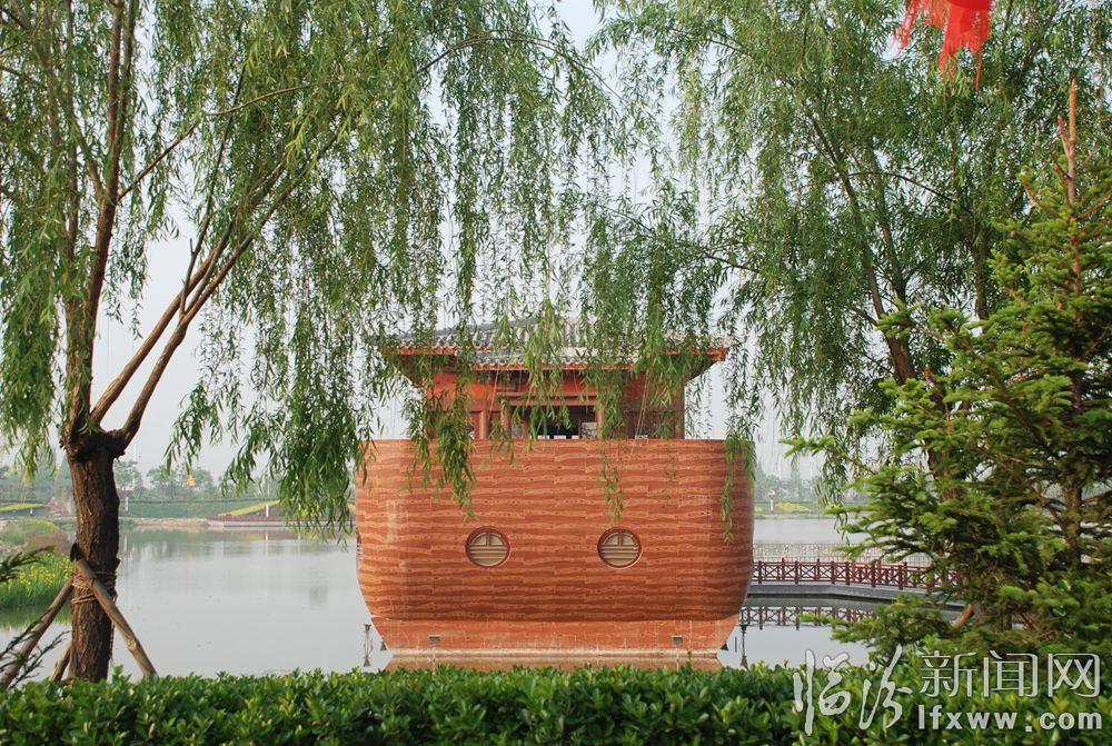 一湖就是如意湖,面積42畝,設有音樂噴泉,可噴出天仙起舞、世紀噴泉、晉國戰鼓等40多種造型。水源來自澮河水庫,環公園水系常年流動,保持清澈干凈。湖邊亭臺、棧道、游船、荷塘,儼然北國的小江南。