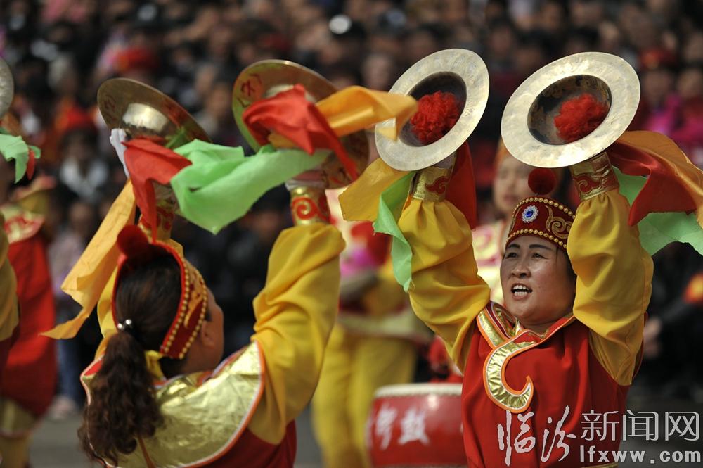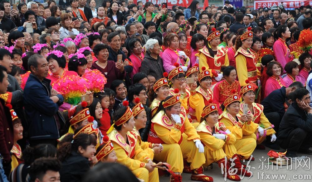 廟前廣場上,六輛鼓車一字排開,鼓車手們整裝待發。鼓車之前,威風鑼鼓、腰鼓、秧歌、旱船、扇子舞等具有濃郁地方特色的節目輪番上演,展現了尉村傳承千年的民俗風華。