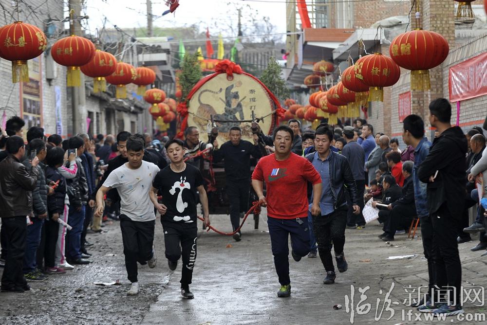 臨汾新聞網訊(記者 閆銳鵬)2017年4月12日,農歷三月十六,山西省襄汾縣汾城鎮尉村一年一度的跑鼓車文化藝術節開幕,十里八鄉的鄉親們云集這里,為鼓車手們吶喊助威。