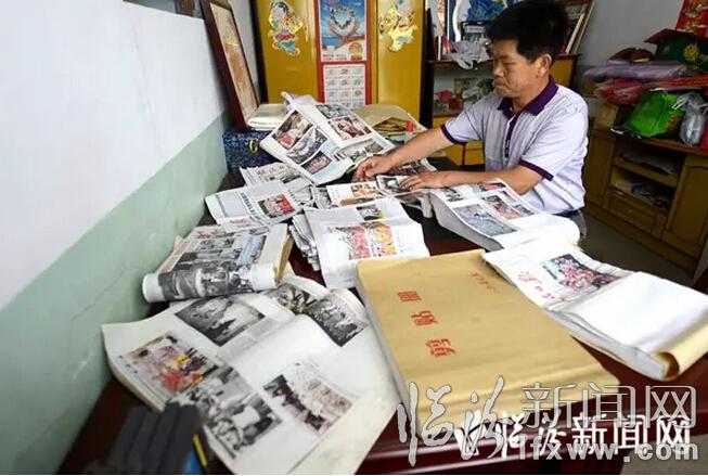 閆洪青將兒子新近發表的作品剪輯粘貼,然后用紙巾輕輕擦拭多余的膠水,翻看著7本厚厚的剪輯冊和3871張照片,老閆回憶起開始剪報的始末……
