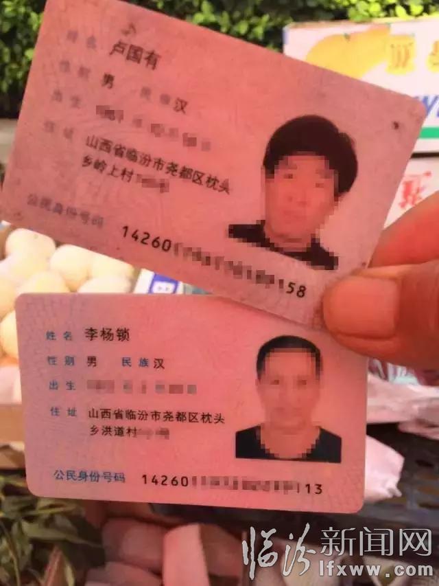 臨汾解放西路一市民早上扔垃圾,在垃圾箱旁撿到兩張身份證。現在尋找失主,如聯系到本人,請告知并到朝殿一巷口找賣水果的中年婦女認領。
