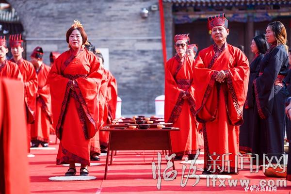 本次婚禮的婚典現(xiàn)場布置、新人婚服、婚典環(huán)節(jié)均按照古禮進行,典禮所用的竹席、幾案、漢盤、合巹(jin)等道具亦專門定制。