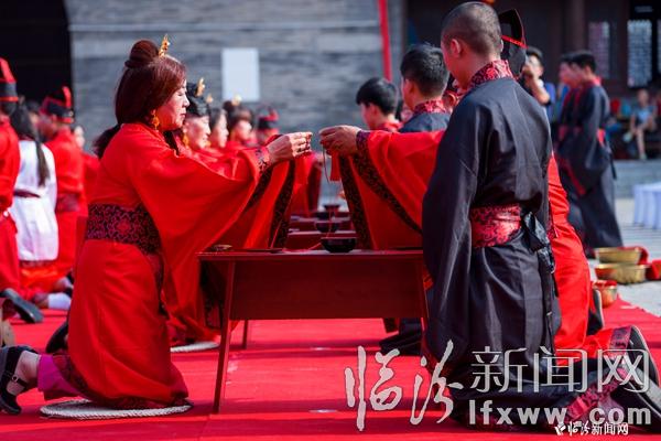 經(jīng)過拜堂、沃盥、對席、同牢、合巹、執(zhí)手禮等傳統(tǒng)禮儀,讓新人們重拾了漢民族傳統(tǒng)禮儀,展現(xiàn)出傳統(tǒng)文化的古典美。