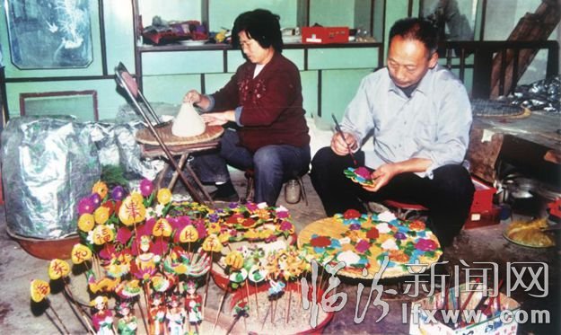 你見過精美的面塑,你見過會說話的面塑嗎?在襄汾縣景毛鄉(xiāng)北李村,年過花甲的張建中梁秋葉夫婦就會制作“會說話”的面塑。不信的話你就來看:“喜迎奧運(yùn)”“神七上天”“新農(nóng)村、新風(fēng)尚”“祝福祖國六十華誕”……這些激動人心的大事,老兩口都讓他們手里的面塑開了口。梁秋葉夫婦生活在襄汾這塊文化熱土上,用心感受著祖國的發(fā)展變化,用一件件面塑作品表達(dá)自己的愛國情。