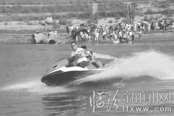 臨汾新聞網訊 6月27日,在襄汾雙龍湖,一場速度與激情的摩托艇水上表演賽引來了許多游客和村民的圍觀。