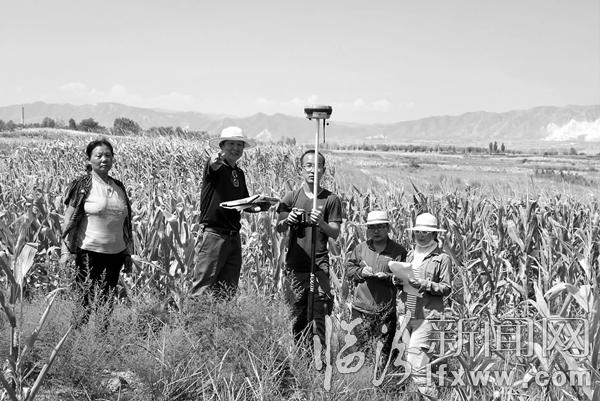 臨汾新聞網訊 9月2日,襄汾縣古城鎮孟家莊村村北農田里,山西省第五地質偵察院的測繪員正在打點、對照土地清冊與航拍圖勾繪地塊。2015年,該縣將完成190個行政村、52.16萬畝承包地的確權登記頒證任務,目前,已進入清查測量關鍵階段。焦玉龍 鄭少婕攝