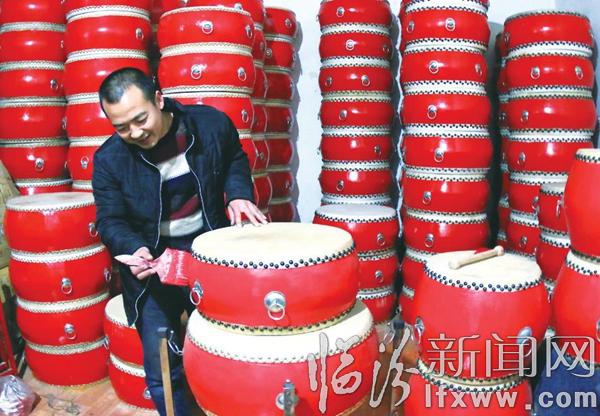 臨汾新聞網訊 近日,在襄汾縣徐記鑼鼓廠里,到處可以看到一片繁忙的景象。春節臨近,工人正在加緊制作鑼鼓,為正月鬧社火備貨。(張旦 張有亮)