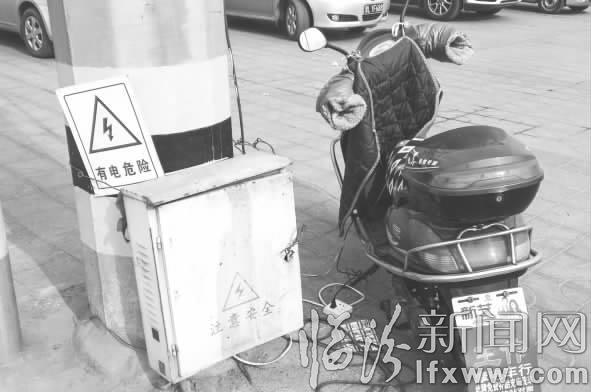 臨汾新聞網(wǎng)訊 近日,記者在襄汾縣復(fù)興路看到,一輛電動車竟然在電線桿下的配電箱私接電線充電。