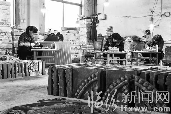 臨汾新聞網(wǎng)訊 近日,在襄汾縣趙康鎮(zhèn)牛席村仿古工藝廠,工人師傅們正在認(rèn)真制作磚雕作品。該廠生產(chǎn)制作的磚雕做工細(xì)膩、構(gòu)圖精美、栩栩如生,遠(yuǎn)銷北京、廣東等地。圖為磚雕師傅正在加工磚雕。