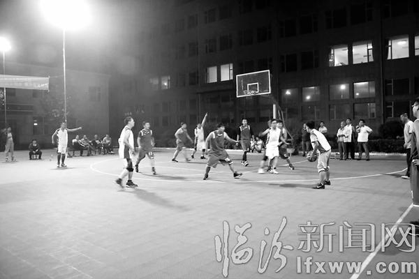 臨汾新聞網訊 為喜迎國慶,提高干部職工身體素質,襄汾縣文明辦、文化局共同承辦2016年襄汾縣“迎國慶講文明樹新風干部職工籃球賽”,此次共有28支隊伍參加。9月23日晚,在襄汾縣消防大隊籃球場舉行了本次比賽的決賽場,圖為大鄧鄉代表隊與萬都村鎮銀行代表隊比賽場景。 記者 王婧 實習生 曹蓉蓉 攝