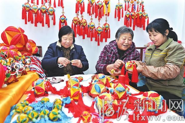 臨汾新聞網訊 1月11日,在襄汾縣趙康鎮紅紅“太平繡球”合作社,婦女們在制作繡球。趙康村是當地有名的“繡球村”,村里的繡球制作巧手們制作的姻緣繡球、招財繡球以及裝飾繡球和體育器具等繡球文創產品,深受市場歡迎,遠銷廣州、深圳等地。