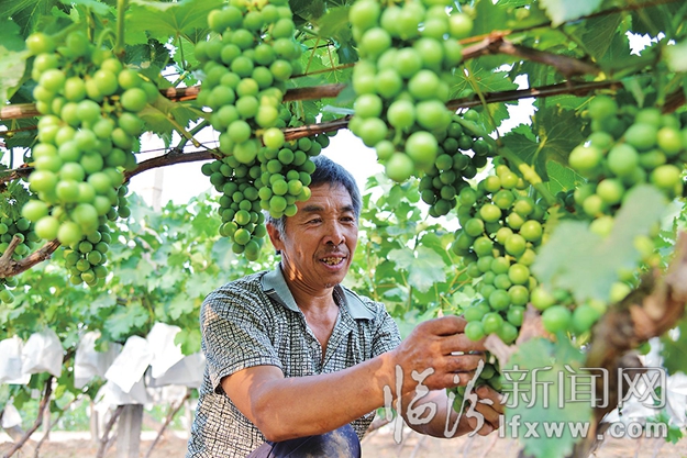臨汾新聞網訊 近日,襄汾縣永固鄉萬寧村千畝葡萄種植基地內,果農正在查看葡萄的生長情況。該村將今年確定為葡萄提質增效年,積極推廣使用有機肥種植、葡萄疏果套袋等新技術、新辦法,不斷提升葡萄品質,確保產出優質葡萄,賣出好價錢。