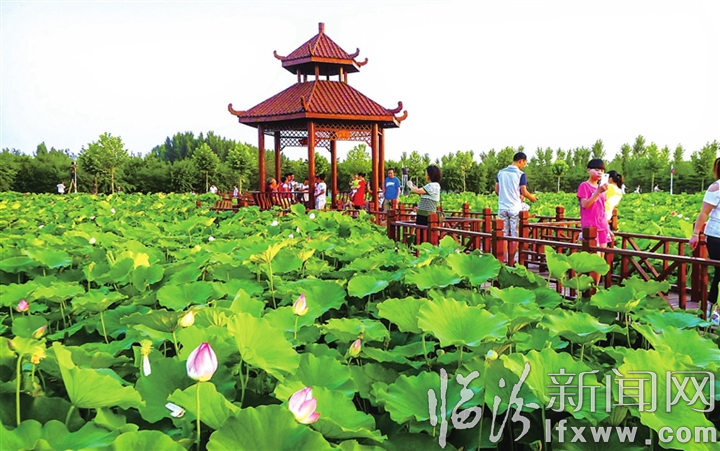 臨汾新聞網訊 近日,襄汾縣燕村荷花公園里游人如織,滿湖爭艷的荷花吸引了眾多游人前來觀賞留影。