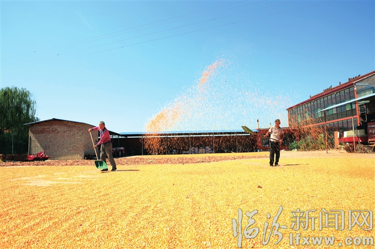 臨汾新聞網訊 9月23日是第一個中國農民豐收節。今年,襄汾縣玉米喜獲豐收,廣大農民利用晴好天氣,在房前屋后抓緊晾曬玉米。圖為該縣西賈鄉西彭村村民在晾曬玉米。