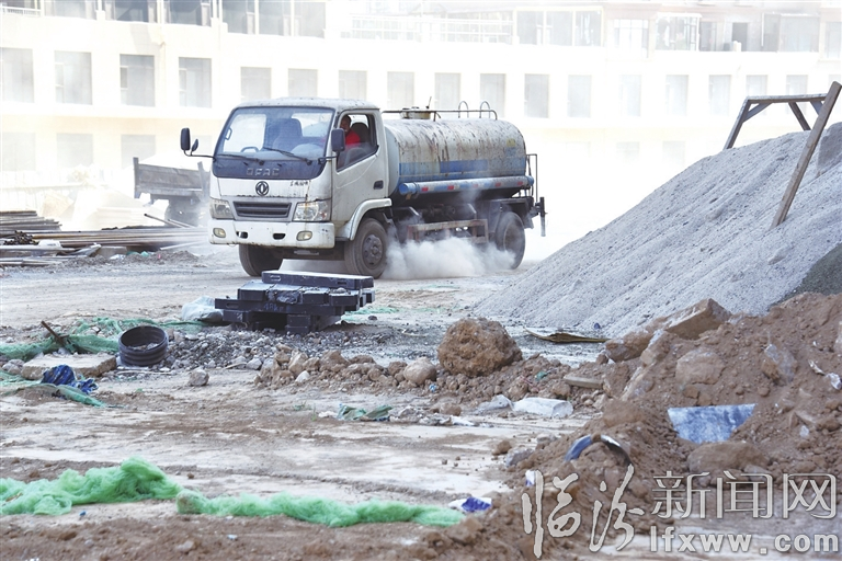 而地處襄汾河西核心區(qū)域的圣堯新城三期項(xiàng)目現(xiàn)場則完全是另一番景象——施工工地靠北一圈“口子”敞開不見圍擋;堆積如小山的建筑垃圾僅有個(gè)別部分有綠網(wǎng)苫蓋,砂石等建筑物料在工地上隨意堆放,沒有采取任何的抑塵措施;道路沒有進(jìn)行最基本的硬化處理,現(xiàn)場雖有一輛灑水車往返噴淋作業(yè),效果卻很不理想——濕洗過的土路在被車輪碾過之后,頓時(shí)變得泥濘起來。