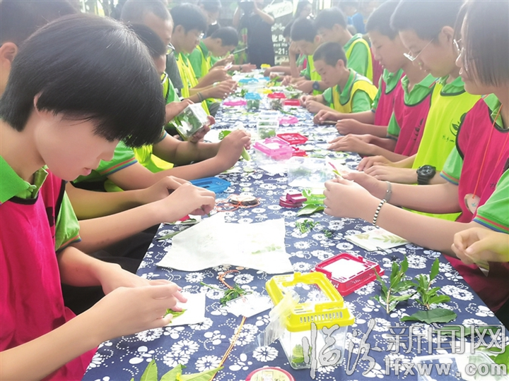 臨汾新聞網訊 8月17日,襄汾縣研學旅行營地推介直播活動第八場在林鄉四季自然教育研學營地開播。該營地是一個集創意農業、循環農業、農事體驗為一體的田園綜合體。營地充分發揮莊園主題特色,以自然教育、晉南農耕文化為主要研學內容,讓學生們在感受、體驗中獲得成長。圖為學生們正在體驗草木拓染。