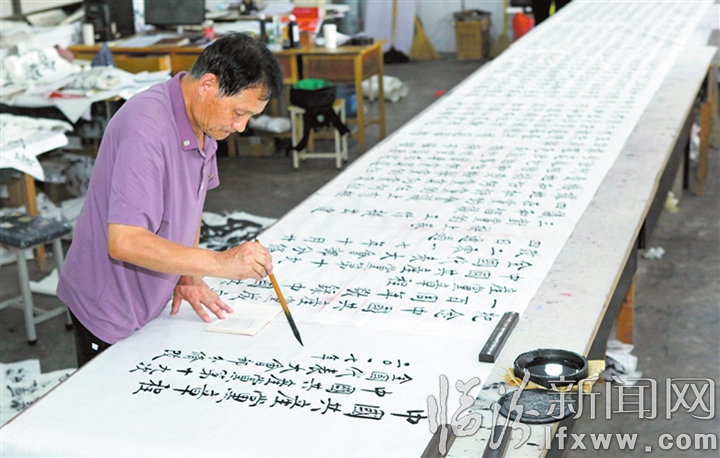 臨汾新聞網(wǎng)訊 日前,襄汾縣星原學(xué)校書法老師栗連虎采用顏體楷書手寫《中國共產(chǎn)黨章程》。該書法長卷共三卷,總長二百六十米,寬一米,作者歷時九十天完成。