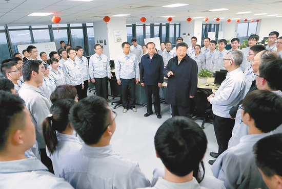 2016年1月4日至6日,中共中央總書記、國家主席、中央軍委主席習近平在重慶調研。這是1月4日下午,習近平在視察重慶京東方光電科技有限公司技術研發中心時即興講話,勉勵年輕研發人員在創新上自強奮斗、敢于突破。新華社記者 蘭紅光 攝