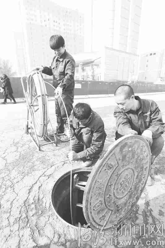 臨汾新聞網訊 3月5日,記者在鼓樓南北街拓寬改造向陽路口看到,施工人員正在將由空中架設的通訊光纜轉為地下。